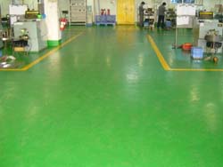 ⑤水性環(huán)氧面漆:用滾涂型水性環(huán)氧面漆二道,或鏝面型水性環(huán)氧面漆一道,完工后要求整體地面光澤柔和、潔凈、顏色均一、無(wú)空鼓;